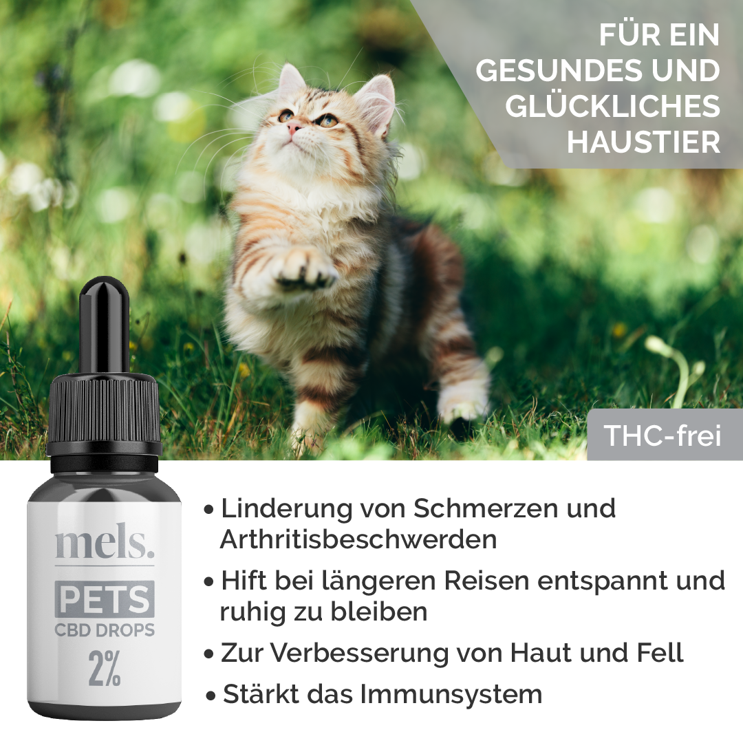 Mels PETS 2% Breitband-CBD-Öl für Hunde und Katzen wurde wissenschaftlich entwickelt und speziell für Ihr Haustier formuliert, um Schmerzen und Leiden zu lindern, eine gute allgemeine Gesundheit zu fördern, die Vitalität wiederherzustellen, bei Gelenkschmerzen, Arthritis, Angstzuständen, Stress, Schlaf zu helfen und zu stimulieren Appetit und Verdauung, stärken die Knochen, stärken das Immunsystem und helfen Tieren, sich von einem Trauma oder einer Operation zu erholen. (Unsere CBD-Tropfen können auch als Hilfsmittel bei der Behandlung von Verhaltensproblemen verwendet werden).