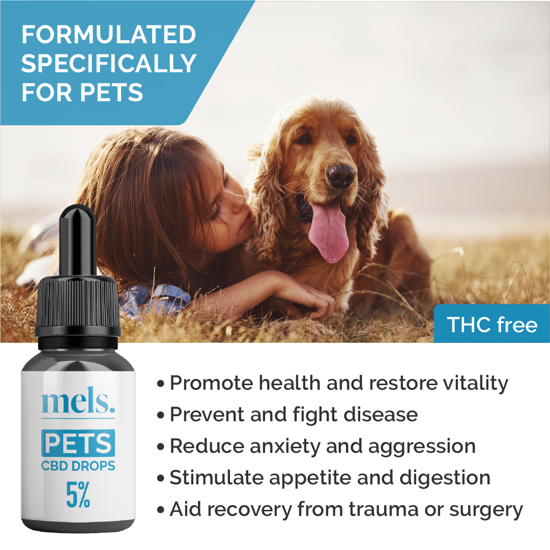- Over 40Kg: MELS PETS 20% CBD Drops